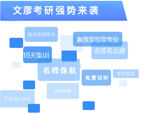 文彦考研培训学校自1996年成立以来,便在“以学生为中心,用高分来证明”的理念指导下,整合全国优秀的教育资源,汇聚了150多位全国优秀的教师学者 ,在全国一百多座城市开办连锁教学。创办二十多年来,文彦以其优异的成绩、卓越的教学质量,备受学生好评。